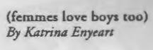 (ID: A screenshot of an archived zine, in black and white. It reads: "(femmes love boys too) / By Katrina Enyeart”. The byline is in italics. It is the title of a poem.)